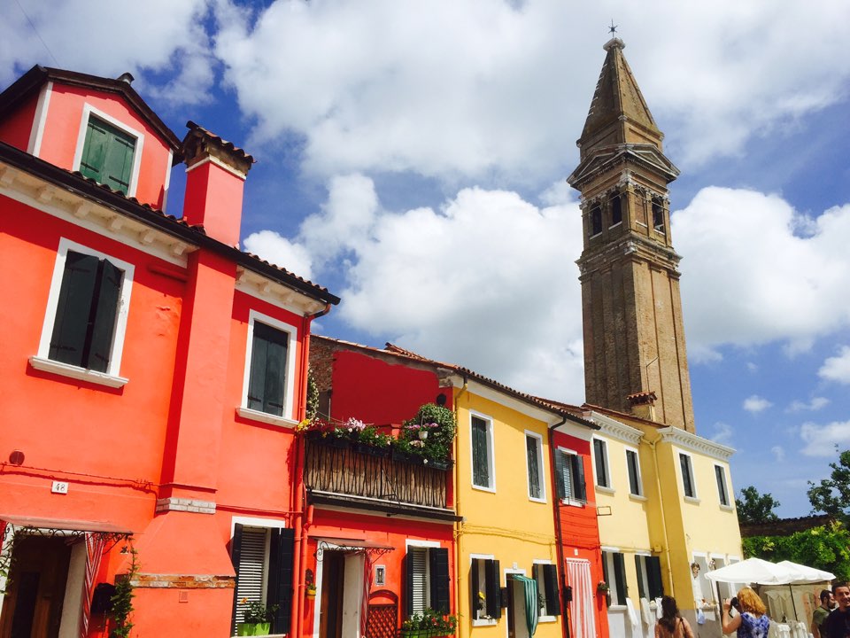 부라노섬은 빨강 , 파랑, 노랑 등 화사하고 밝은 색의 집을 많이 볼 수 있습니다. 이는 이 지역 고기잡이 배를 알록달록한 색채를 사용하여 칠하던 것에서 유래했다고 합니다.